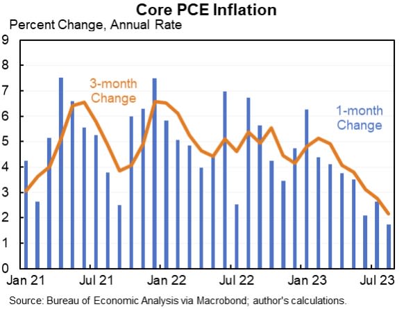 I'm rewriting this paragraph at the 11th hour because the PCE (Personal Consumption Expenditures) inflation data came in better than expected. The Federal Reserve has historically focused on PCE, so this had a major impact on expectations for future rate hikes. When I originally wrote this paragraph yesterday, the markets were pricing about a 40% chance of a rate hike in November/Decemebr, today I have it looked like the chance of a rate hike was as low as 15%.
